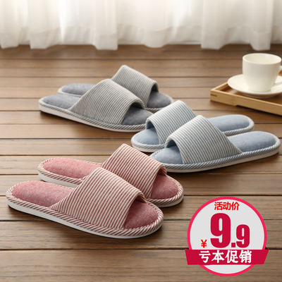 情侣棉拖鞋女夏日式亚麻居家室内木地板软底休闲防滑鞋春秋季特价-淘宝网