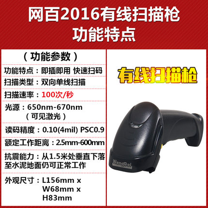 网百2016条码扫描枪有线扫码枪快递专用巴枪扫码器超市快递扫描枪