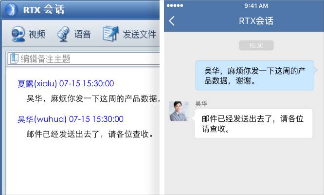 企业微信作为RTX升级版,为RTX用户提供了企业微信插件。管理员安装RTX企业微信插件后,成员即可在手机上用企业微信收发RTX的消息,同样享受移动办公的便捷。