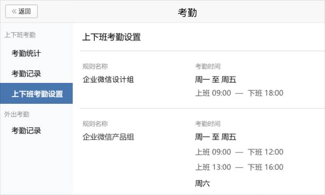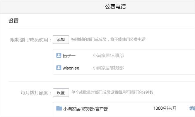除此之外,不仅方便员工,也方便管理员,企业微信1.2新版本的管理端更加智能:管理员能在手机上管理公司通讯录;考勤支持多时段设置以及不同部门的打卡规则;公费电话能指定部门或成员的使用权限或拨打限额。设定更为灵活。