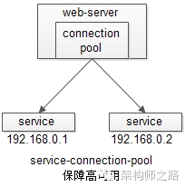 【站点层】到【服务层】的高可用,是通过服务层的冗余实现的,常见实践是通过 service-connection-pool 来保证自动故障转移
