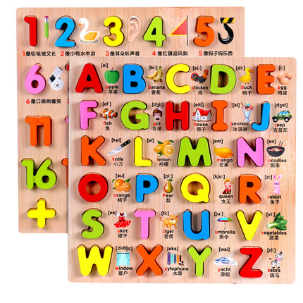 数字母男女孩宝宝木质拼图儿童早教益智拼板积木玩具1-2-3-4-5岁 环保水性漆 立体字母数字 认知拼图